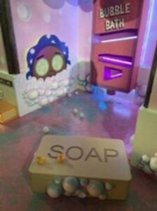 One part that really stood out to us was the bubble bath section. The idea of bubbles, soap and baths is something that most children will have experienced. They had created an enormous bubble bath with rubber ducks and bubbles which the children make race down some tubes into the bath.