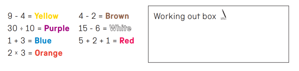 This is a wonderful activity because it not only introduces and helps participants develop basic maths skills, but also shows that maths is something they can do- because they have a successfully coloured in picture to prove it.