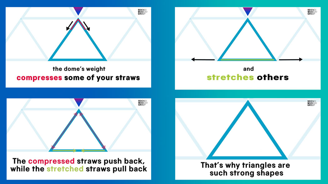 We found that taking difficult concepts and boiling them down to the absolute essence was easier with some videos than others. Build a Dome was particularly challenging; it is a complex activity, underpinned by fairly sophisticated engineering principles. Eventually we opted for a combination of simple wording and animation.
