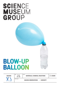 Blow-up Balloon is a great activity for showing the gas that is produced in a chemical reaction. Using baking soda and vinegar mixed in a bottle how many balloons can you blow up? You can explore how quickly the balloons inflate by varying the amounts of vinegar and baking soda or changing the size of the bottle.