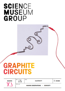 Graphite circuits is a great hands-on activity all about electricity! This activity looks at using graphite in pencils lead as a conductor of electricity. In this hands-on activity students draw on paper any shape they’d like (as long as it’s one continuous line) and then connect a battery to the circuit using some leads. If done correctly anywhere on the circuit will light up the LED.